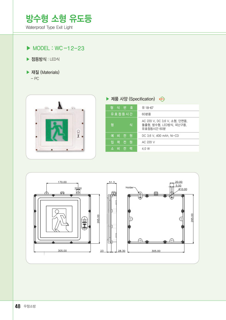 방수형 피난구 유도등 (소형) 페이지 정보 작성자 관리자 댓글0건 관련링크 이전글 목록 본문 방수형 피난구 유도등 (소형) 제조사 : 우창소방 가 격 : ──────────────────────────── 제품상세정보 ───────────────────────── .. 이전글 목록